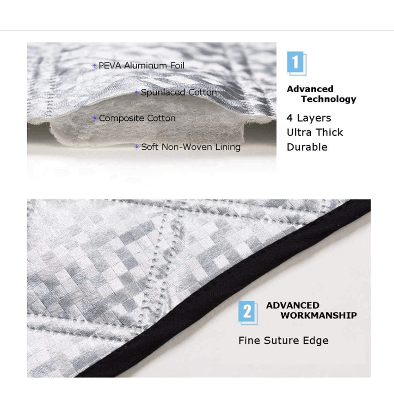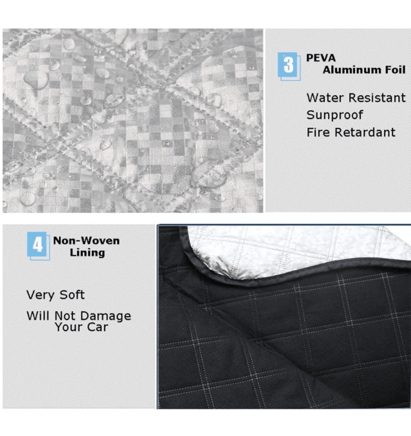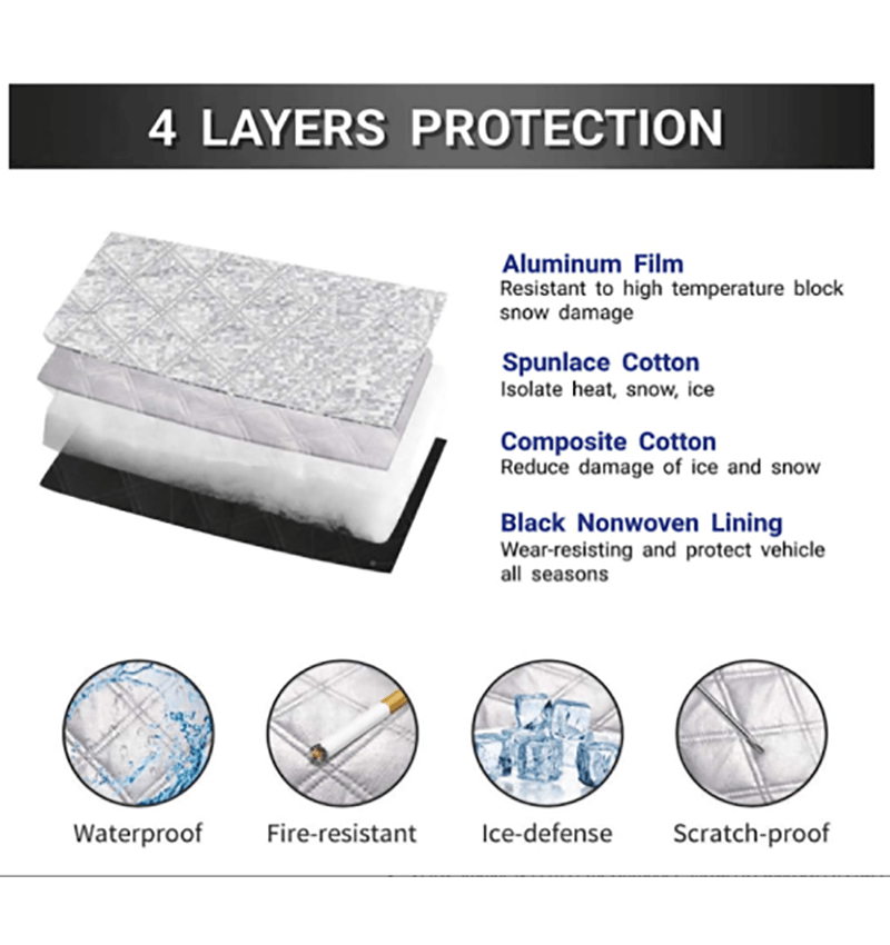 【重型和四层】:汽车挡风玻璃罩由 4 层制成 - PEVA 铝箔、水刺棉、复合棉、柔软无纺衬里。
